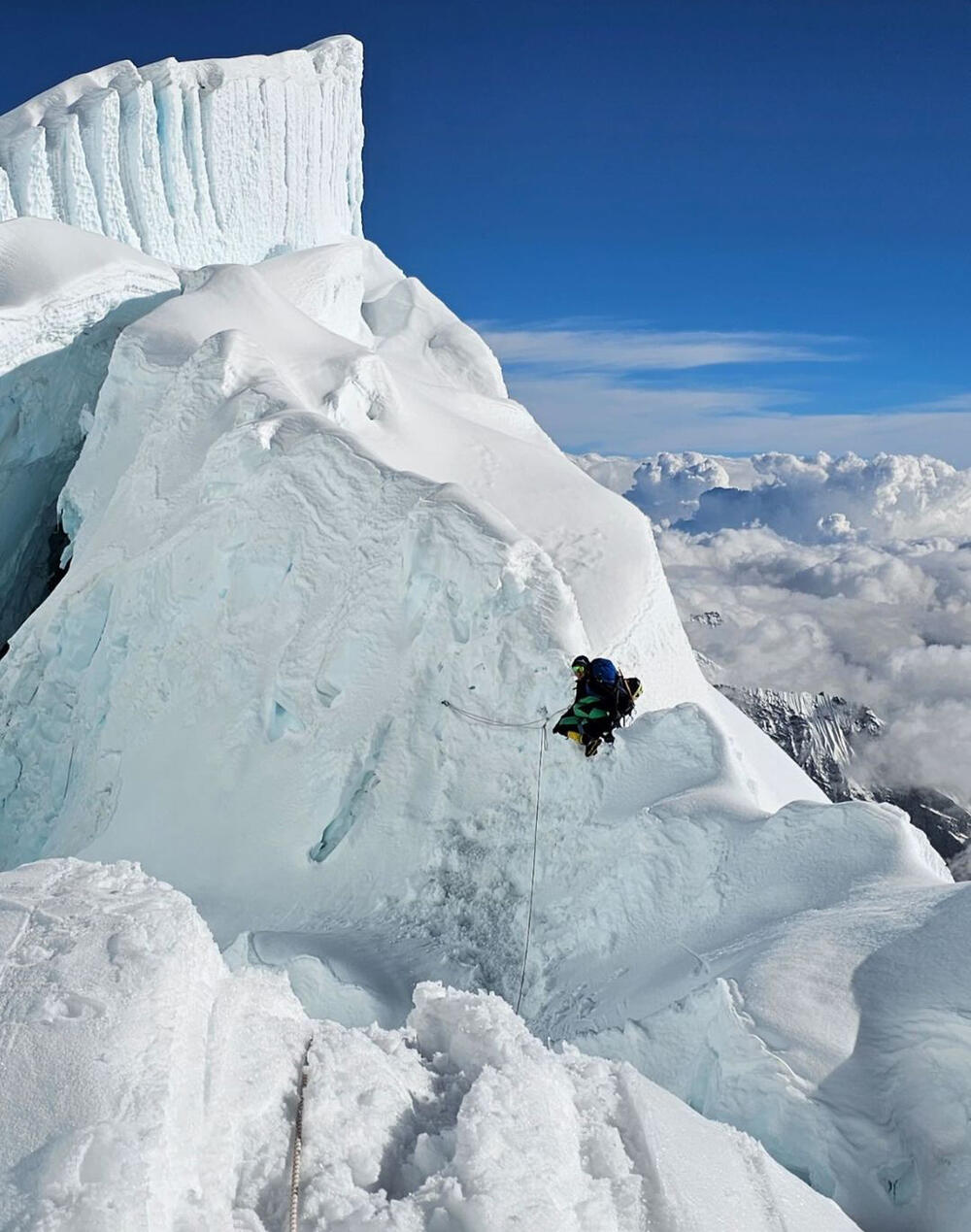 «Чем ближе вершина, тем волнительнее. Все картинки, которые я когда-либо видела, оживают перед глазами, вот же Хиллари-степ — гребень из снега и льда, я это всё теперь вижу наяву, и это реальность, от которой дыхание становится еще сложнее, слезы радости, желание идти вперед только усиливается!