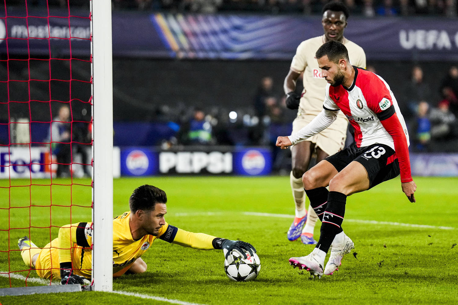 «Фейеноорд» проиграл «Зальцбургу» 1:3. У хозяев забил Анис Хадж-Мусса (81). У гостей — Карим Конате (45+2 и 58) и Дауда Гиндо (86). На 80-й минуте «Фейеноорд» остался в меньшинстве из-за прямой красной карточки Криса-Кевина Надже.