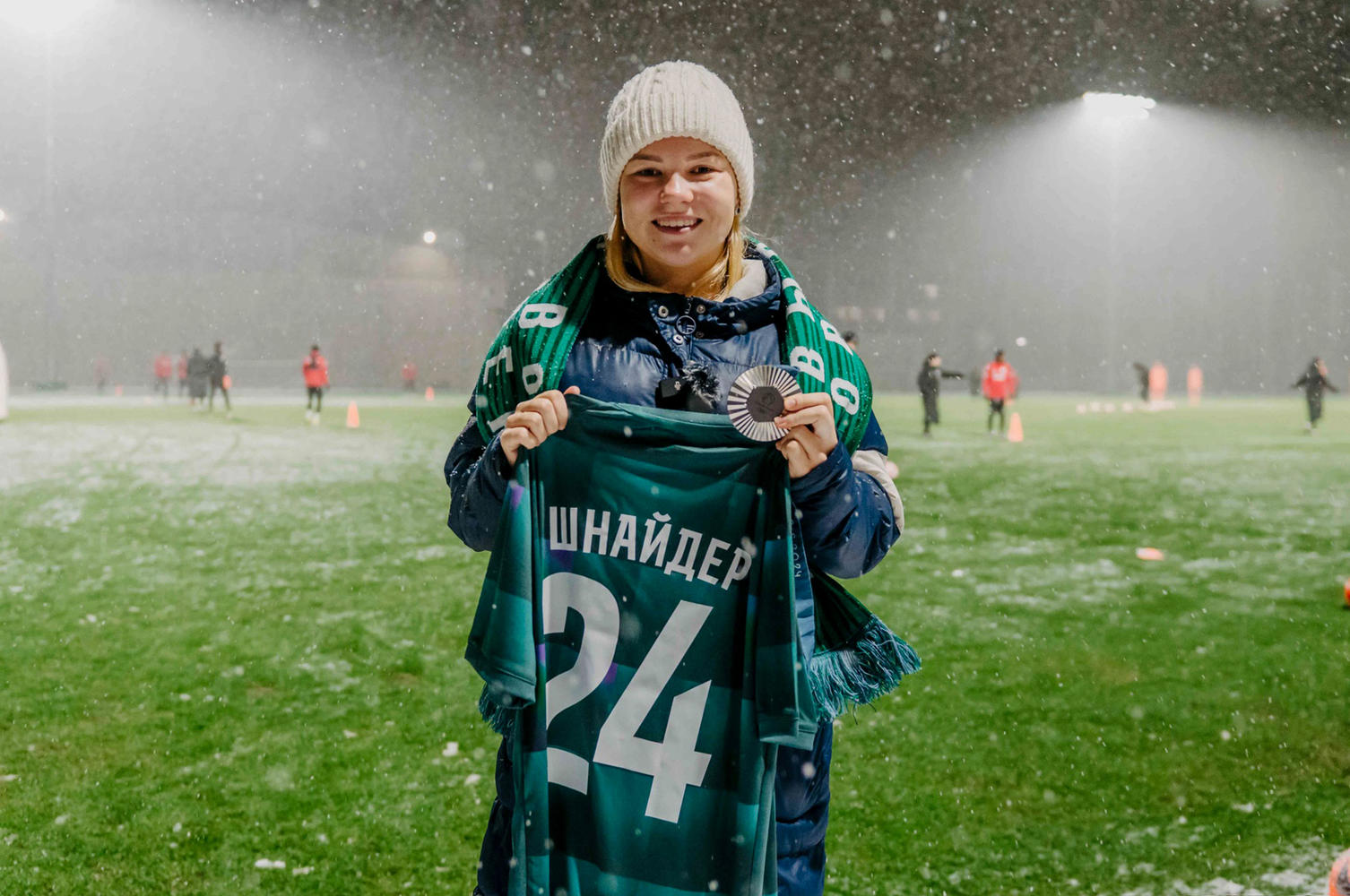 Диана привезла на базу Новогорска серебряную медаль с Олимпийских игр в Париже, а главный тренер Заур Тедеев подарил ей именную футболку клуба.