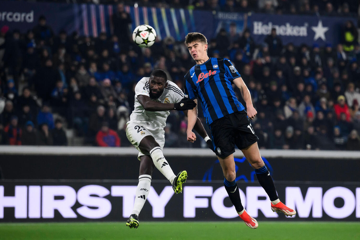 «Аталанта» проиграла «Реалу» 2:3. У хозяев забили Шарль де Кетеларе (45+2, пенальти) и Адемола Лукман (65). У гостей — Килиан Мбаппе (10), Винисиус Жуниор (56) и Джуд Беллингем (59).