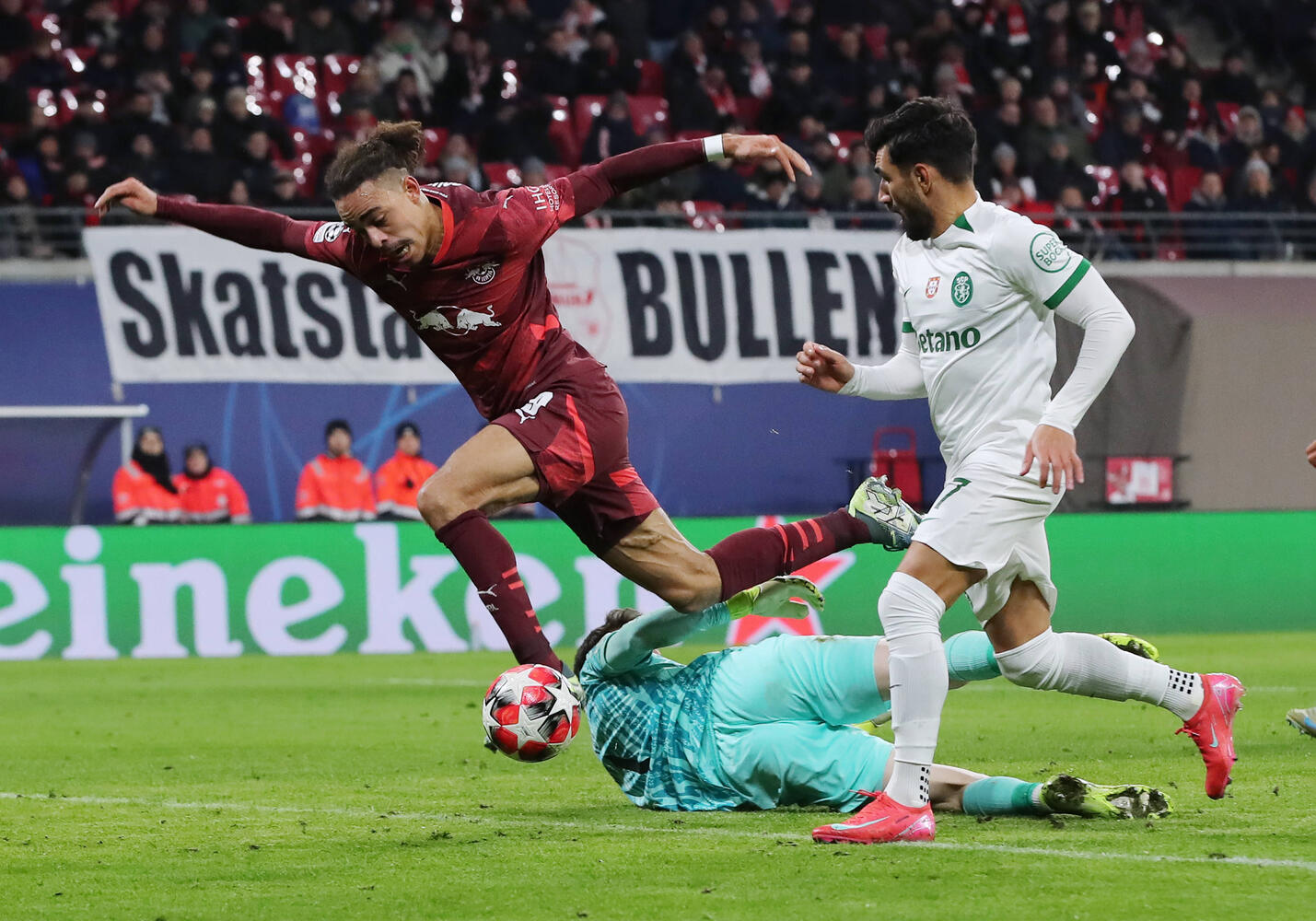 «РБ Лейпциг» обыграл «Спортинг» 2:1. У хозяев забили Беньямин Шешко (19-я минута) и Юссуф Поульсен (78). У гостей — Виктор Дьёкереш (75).