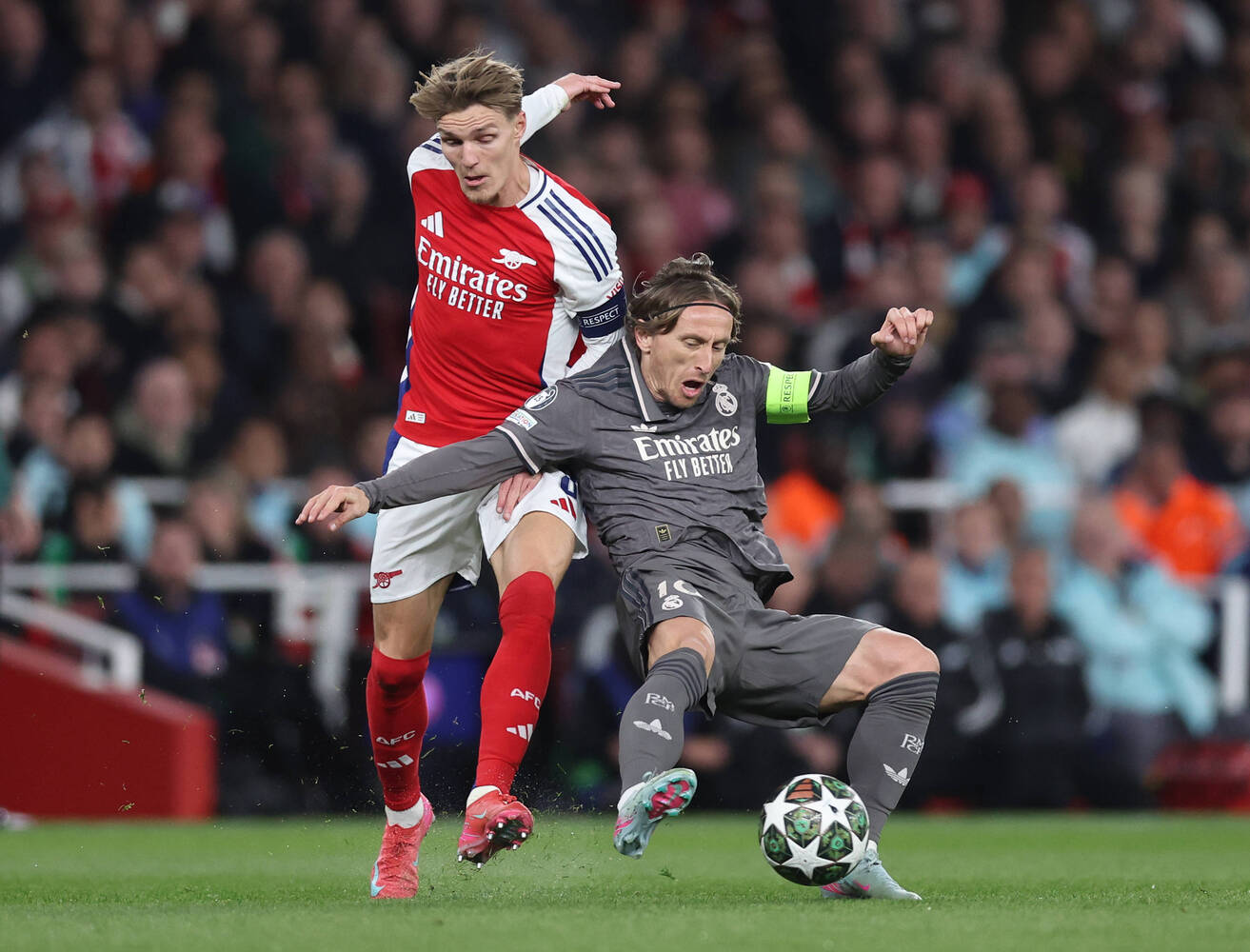 «Арсенал» разгромил «Реал» 3:0. Забили Деклан Райс (58 и 70, оба со штрафных) и Микель Мерино (75). На последней добавленной минуте Эдуардо Камавинга получил вторую желтую карточку за удар по мячу после свистка и пропустит ответный матч 16 апреля.
