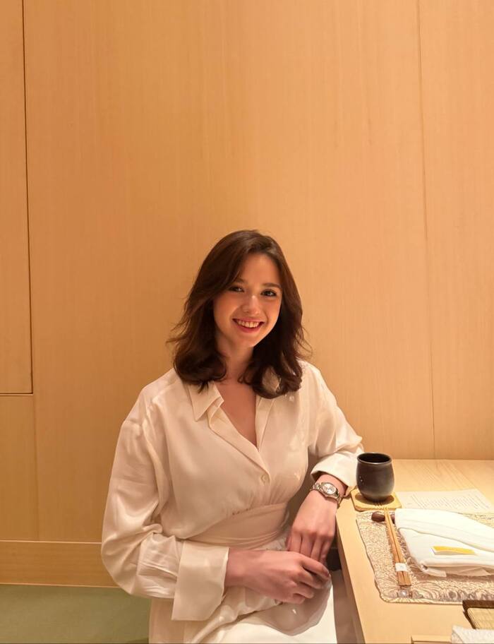 19-летняя спортсменка всё чаще предпочитает классический стиль в одежде. На этот раз для фотосессии Камила выбрала элегантный белый костюм, состоящий из классических прямых брюк и свободного жакета, под которым виднеется светлая блуза, завершив образ изящной парой туфель-лодочек в тон основному ансамблю. Нельзя не отметить, что наряд сидит на фигуристке безукоризненно, создавая атмосферу лёгкости и открытости.