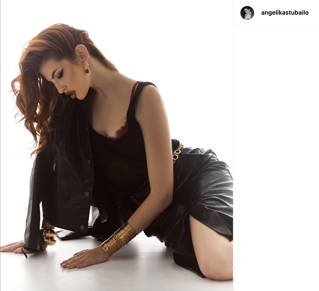 Под фотографиями она игриво подписала: «Мяу». На снимках Анжелика предстает в очень соблазнительном образе — бордовый кружевной бюстгальтер кокетливо выглядывает из-под небрежно сползающего черного топа, а высокая кожаная юбка с изысканным тиснением под рептилию подчеркивает ее изящную талию, создавая неповторимый силуэт.
