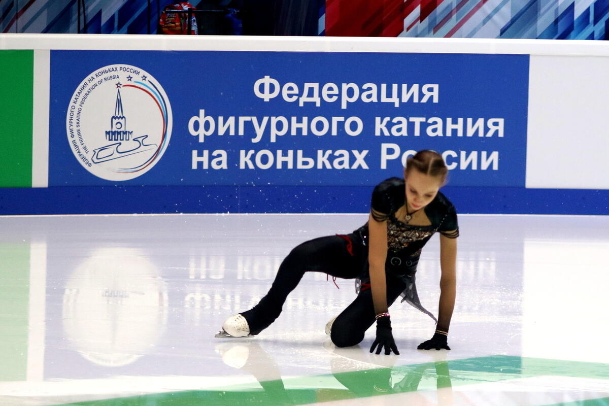 15-летняя Зинина неудачно упала, исполняя тройной лутц. Она осталась лежать на льду после падения и не смогла завершить выступление.