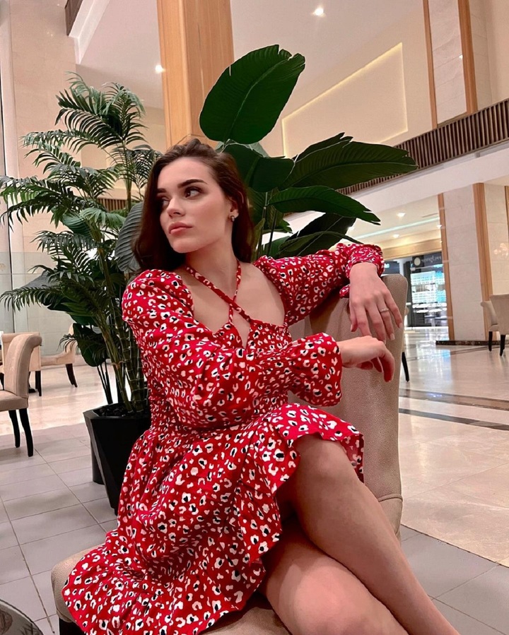 На страничке Сотниковой появилось новое фото. Молодая мама, одетая в красное летнее платье, сидит в холле гостиницы. Спортсменка положила ногу на ногу, ее взгляд устремлен в сторону от камеры. Судя по подписи к снимку, фотографировал Аделину ее гражданский супруг Дмитрий.