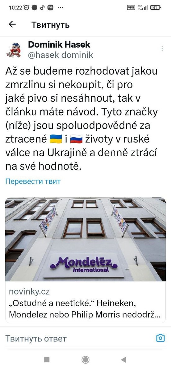 Расстроенный от такого полного игнорирования своих спортивно-политических идей, Гашек не нашел ничего лучшего, чем опубликовать на своей странице ябедно-жалобный пост в котором, он «стучит» на те европейские бренды, которые продолжают, несмотря, на санкции поставлять продукты и напитки в нашу страну. Чех призывает полностью бойкотировать продукцию таких компаний.