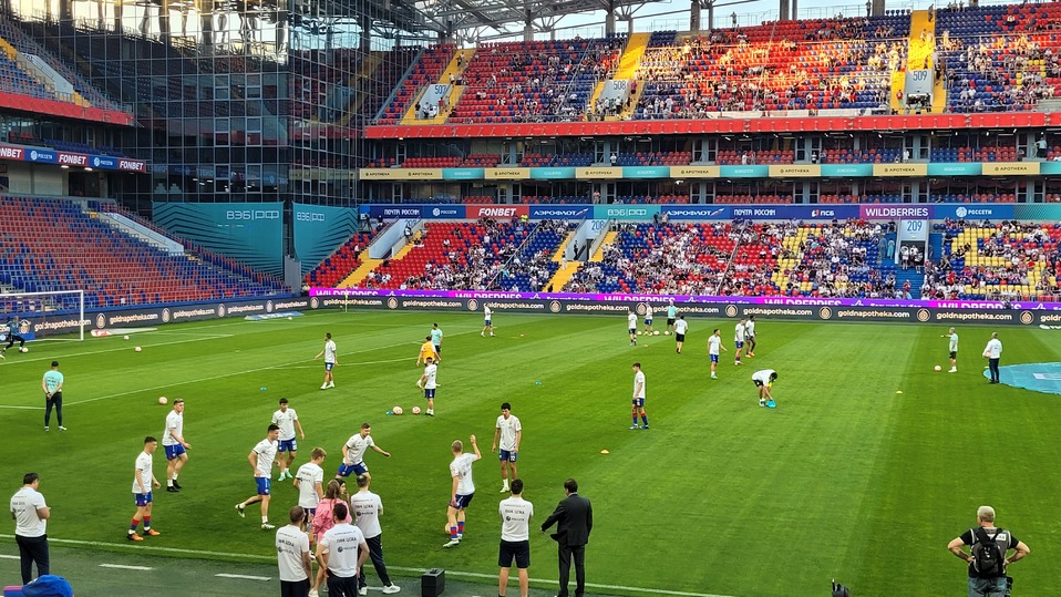 Команды вышли на разминку, до матча осталось чуть больше получаса.