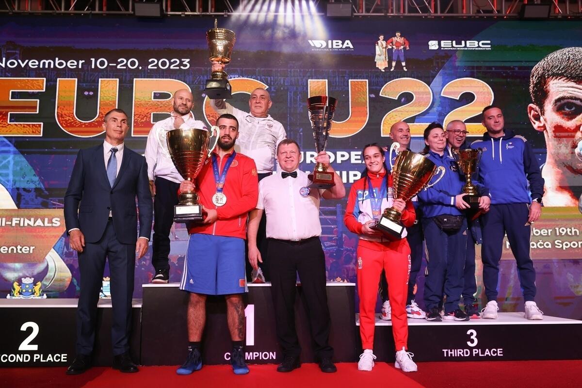 В воскресенье на ринг арены «Морача» в черногорской Подгорице в финальных поединках вышли 17 россиян и девять из них одержали победы. У мужчин на высшую ступень пьедестала поднялись: Мушег Баяндурян в весовой категории до 48 килограммов, Андрей Пегливанян (до 54 кг), Ахмадшох Махмадшоев (до 67 кг), Чеэрав Ашалаев (до 75 кг) и Рамазан Дадаев (до 92 кг).