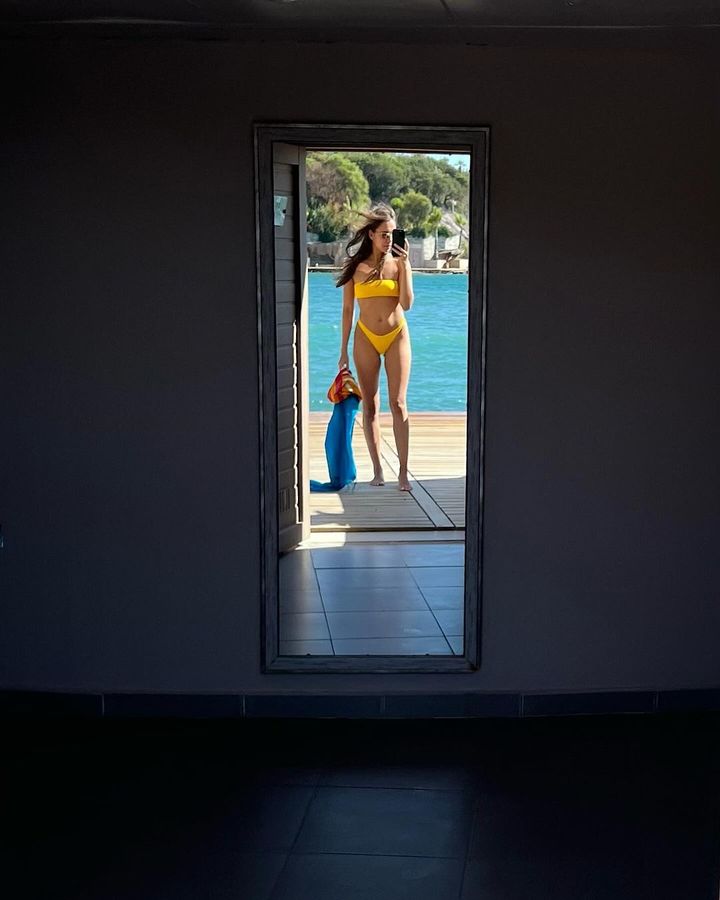 На одном фото чемпионка позирует в белом топе, под котором нет бюстгальтера, и трусиках от бикини. Маргарита стоит на борту яхты, вытянувшись во весь рост и подняв руку вверх. Поза и наряд позволяют разглядеть стройную фигуру и идеальной формы ноги.