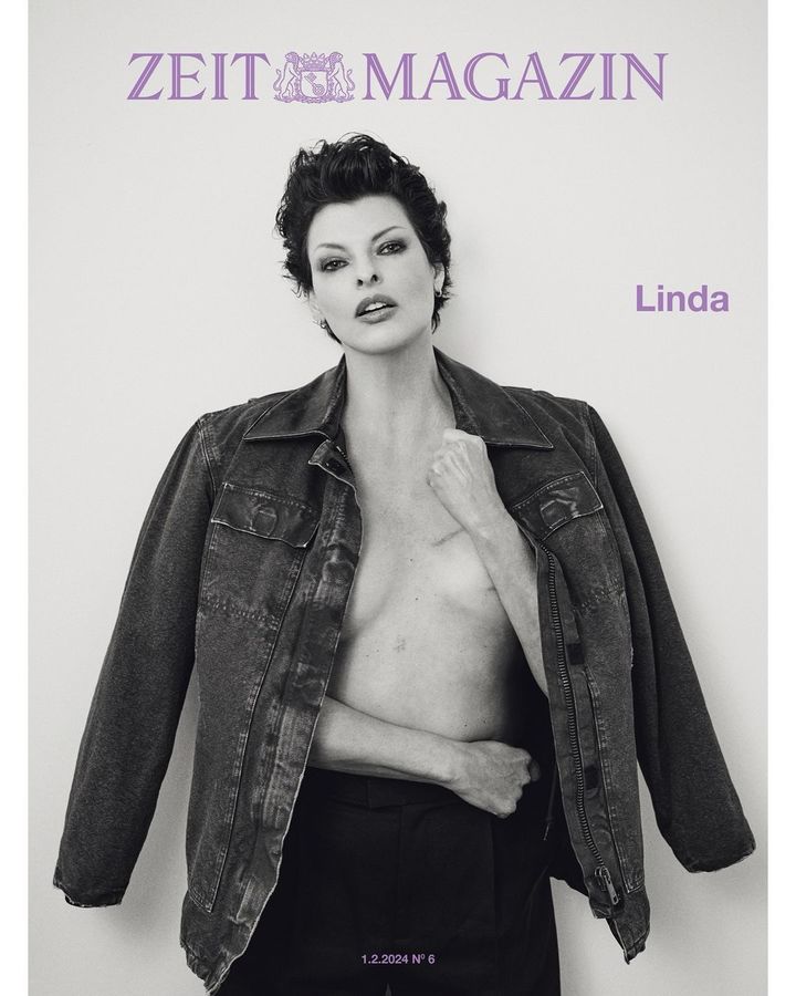 Фотографии, сделанные известным фотографом Кэсс Берд, появились на страничке Линды в соцсетях. Под фото с обнаженной грудью Евангелиста оставила такую подпись: