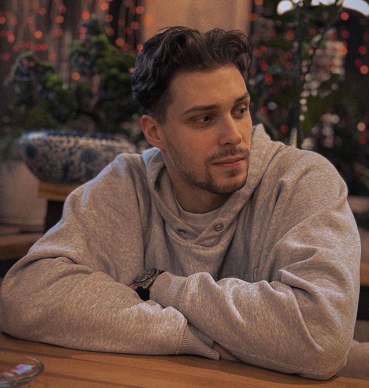 На страничке Сенчуковой появилась свежая фотография именинника. Василий сидит за столом, устремив взгляд в сторону от камеры. Выглядит сын артистов как модель.