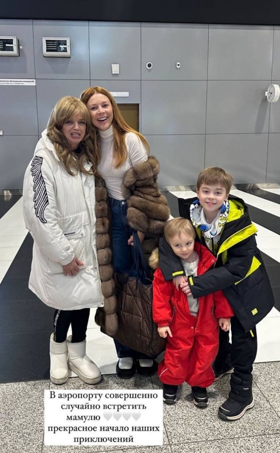 В ожидании рейса Подольская столкнулась с матерью своего мужа Еленой Пресняковой. Свекровь и невестка не упустили случая сделать фото на память. Сыновья Натальи присоединились к маме и бабушке.