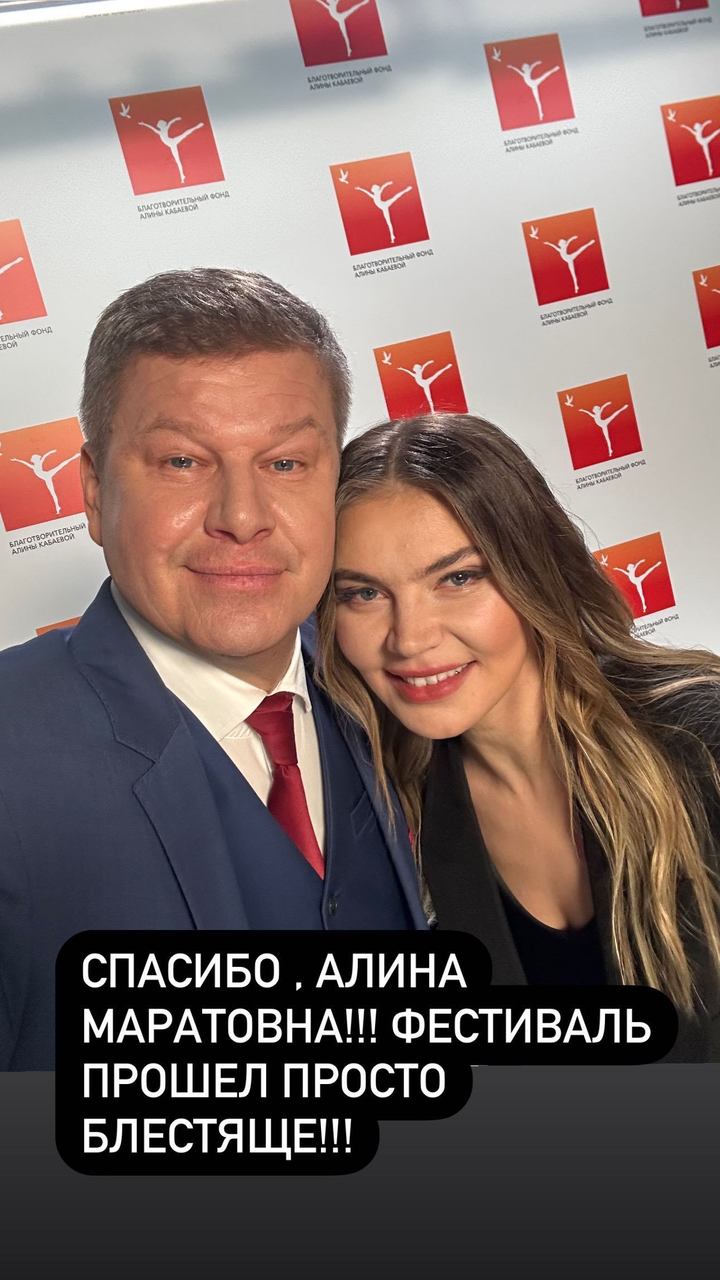 Губерниев стал ведущим фестиваля художественной гимнастики «Алина-2024», прошедшего в Минске. По завершению мероприятия спортивный комментатор телеканала «Матч ТВ» сделал селфи с главной гостьей фестиваля Алиной Кабаевой. Снимок появился в соцсетях Губерниева.