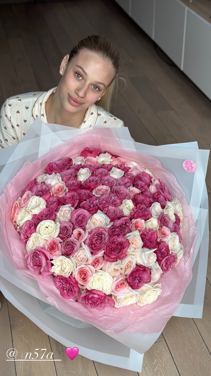 Субботина выложила в соцсети фотографии с огромным букетом розовых и белых роз, подаренных бойфрендом. Александр преподнес их своей любимой с самого утра, Варвара еще даже не успела переодеть пижаму и нанести макияж.