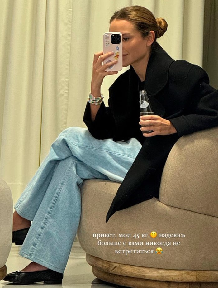 Маликова выложила в соцсети новое фото, где она сидит в глубоком кресле. На блондинке широкие джинсы и черный пиджак оверсайз. Стефания неспроста оделась в скрывающие фигуру вещи — оказалось, что она недовольна своим нынешним весом.
