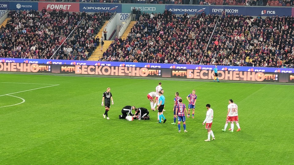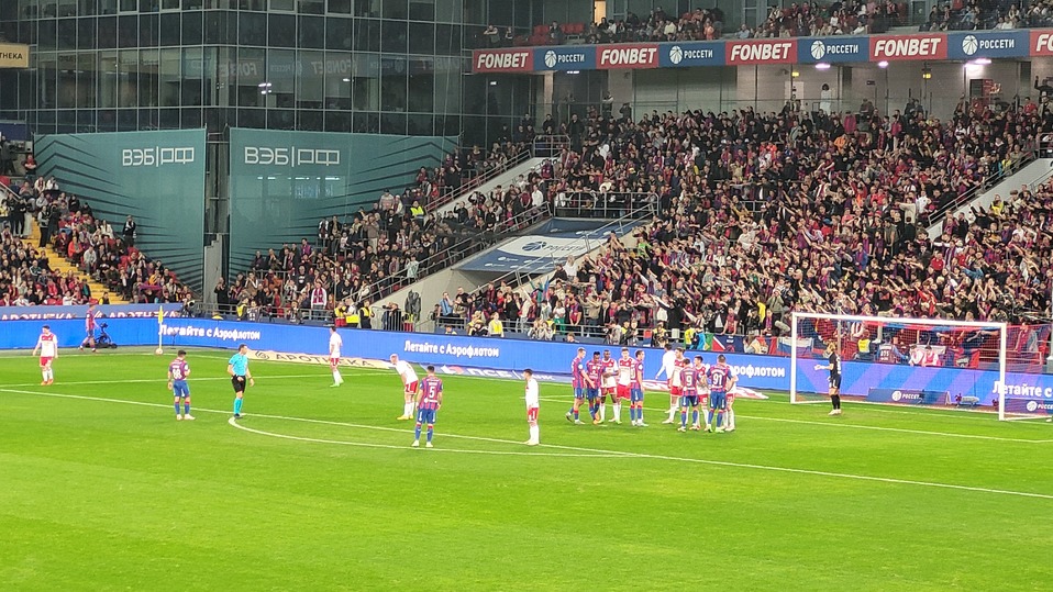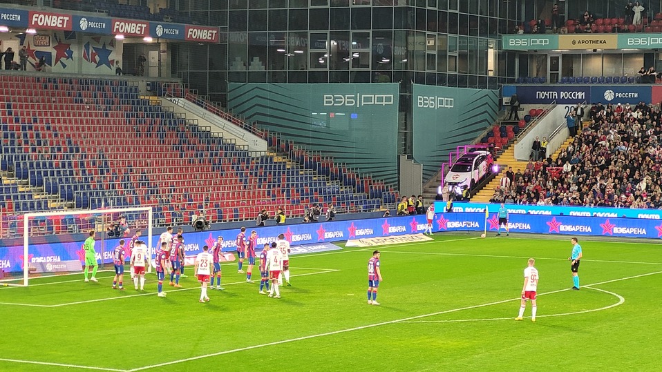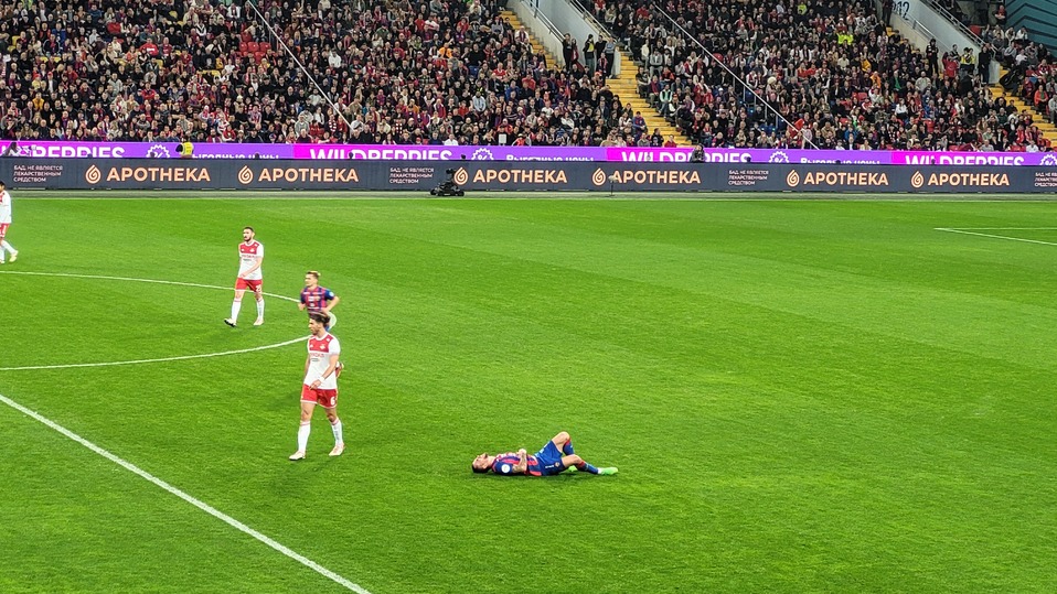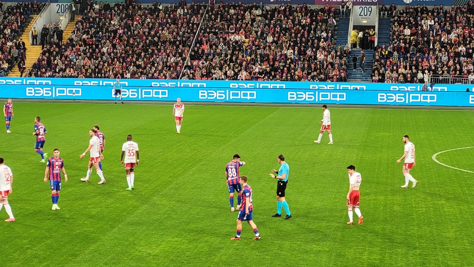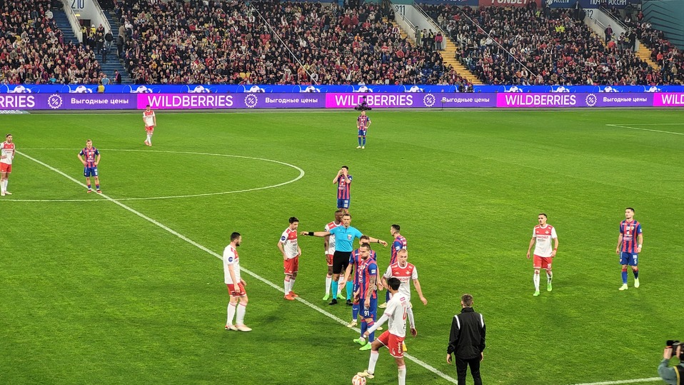 '25 Кажется, мяч в руку игроку ЦСКА попал, спартаковцы просят пенальти! Арбитр молчит.