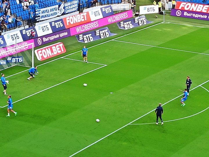00:00 Федор Смолов активно отрабатывает дальние удары на разминке перед игрой.