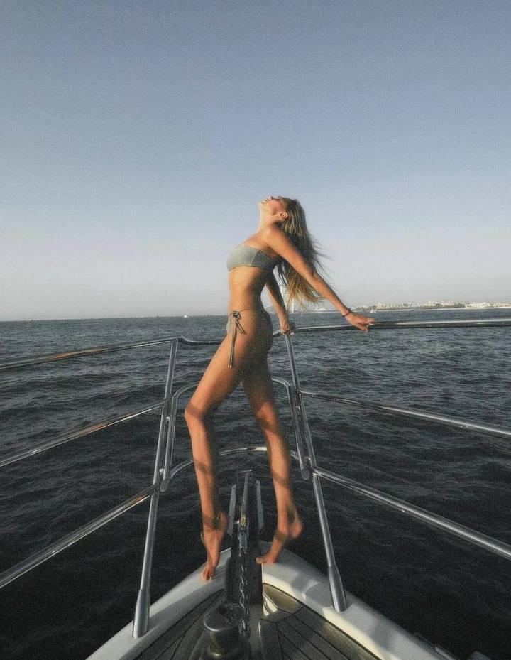 На страничке Загитовой в соцсетях появились фотографии, сделанные во время морской прогулки на яхте. Алина позировала в сером бикини, состоящем из топа-бандо и маленьких трусиков на завязках.