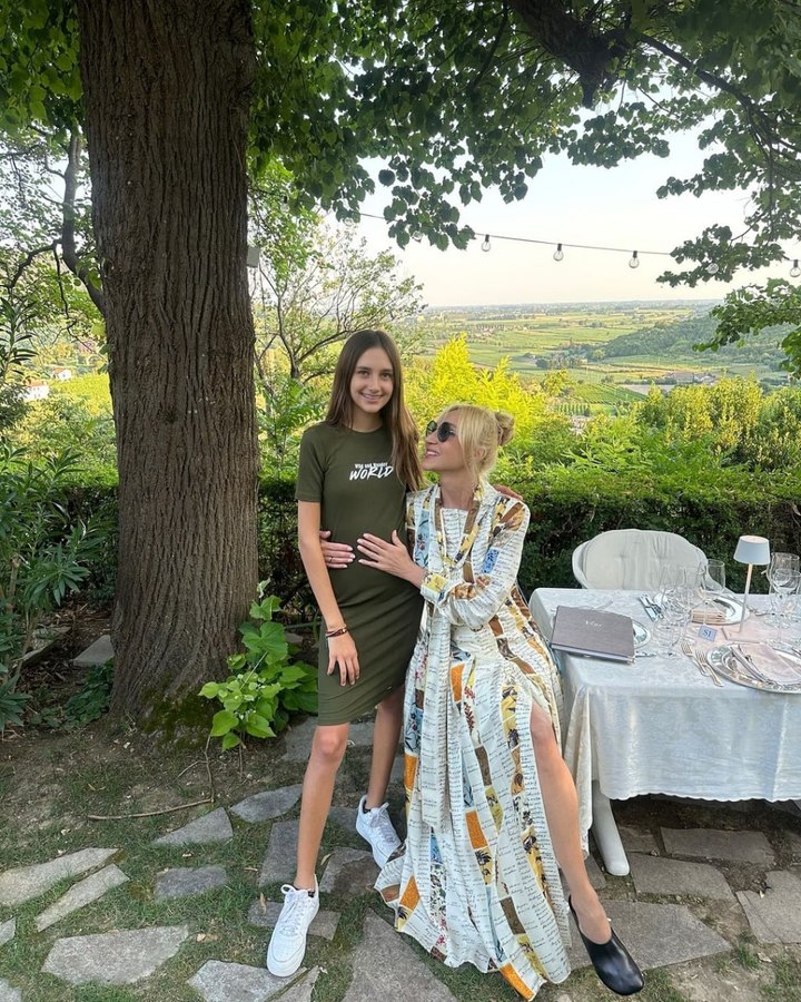 Кристина поделилась совместной фотографией с наследницей на фоне живописной природы. Певица сидит за столом, обнимая дочку, стоящую рядом. Клавдия одета в трикотажное платье-футболу, подчеркивающее ее стройную фигуру и открывающее взглядам длинные ноги.