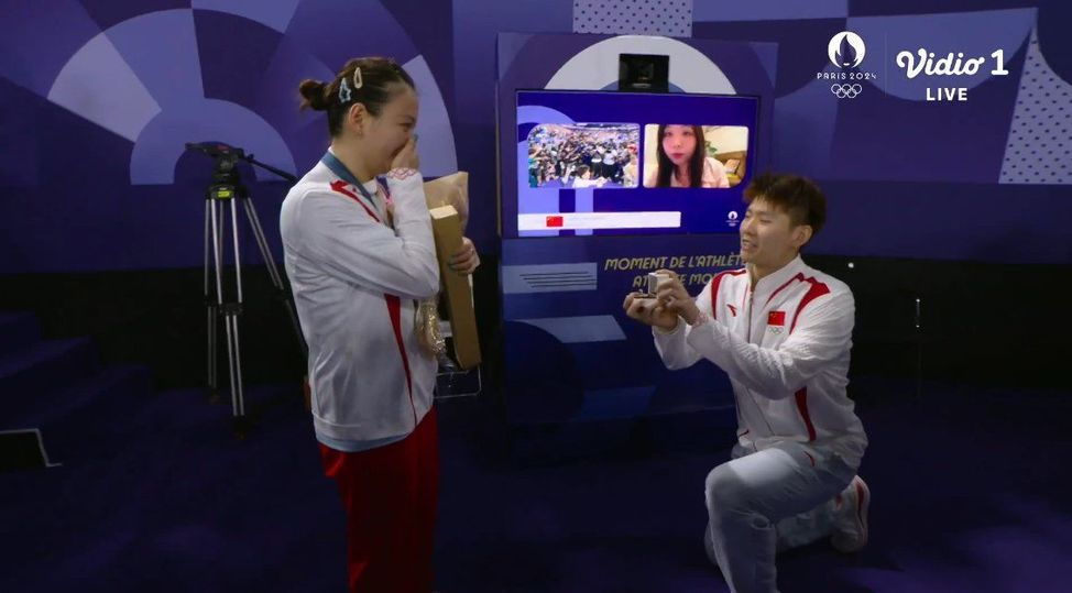 Олимпийские игры 2024 года богаты на события. 2 августа китайские бадминтонисты Хуан Яцюн и Джэн Сивей разгромили соперников из Южной Кореи за 41 минуту. Но уже после церемонии награждения бадминтонистку Яцюн ждал еще один приятный сюрприз - ее коллега из китайской сборной Лю Юйчень сделал ей предложение руки и сердца. Спортсмен встал на одно колено и достал кольцо. Девушка заплакала и ответила согласием. Трогательный момент проходил на глазах болельщиков, которые поддержали пару. Теперь Яцюн украшает еще больше золота.