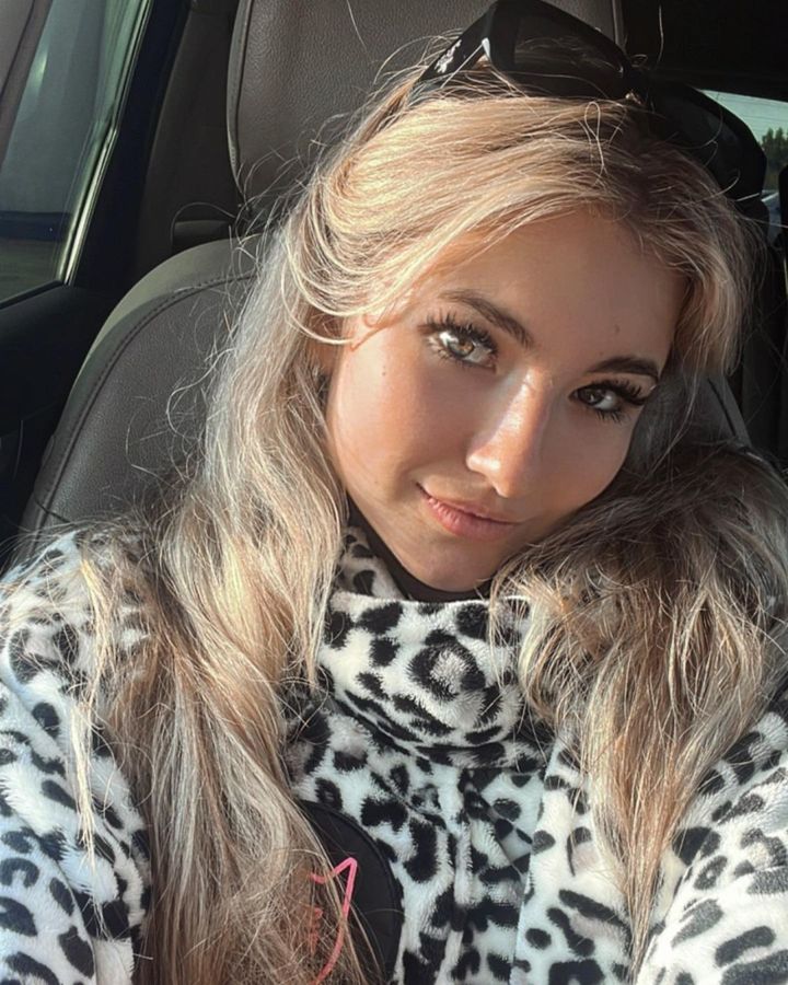 Усачева сфотографировалась на телефон в машине. На Дарье плед-пончо из искусственного меха с черно-белым леопардовым принтом. 18-летняя спортсменка кокетливо смотрит в камеру, на ее лице легкая улыбка.
