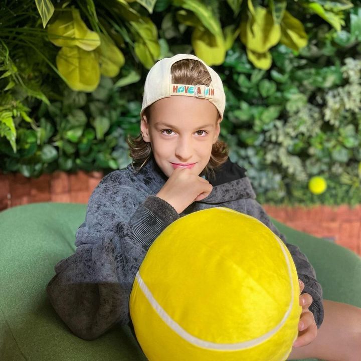На снимке, появившемся в соцсетях, десятилетний Володя снят крупным планом. Мальчик сидит, держа в руках желтый мяч. Длинные волосы выбиваются из-под бейсболки, на лице сияет улыбка.