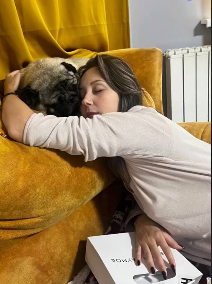 В соцсетях появилось фото, где Туктамышева сидит на полу, положив голову на стоящее рядом кресло. При этом глаза спортсменки закрыты. В кресле лежит собака породы французский бульдог, Елизавета обнимает песика одной рукой.