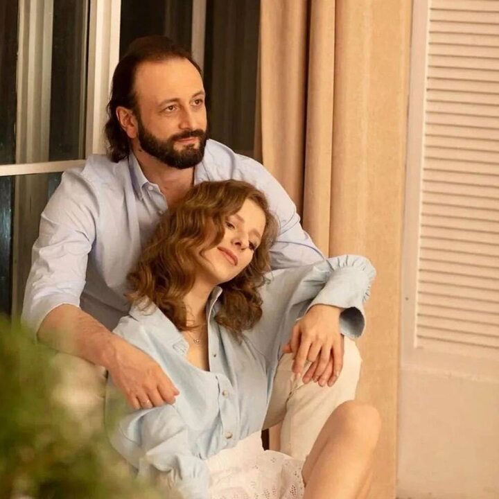 На втором фото супруги сидят в расслабленных позах. Арзамасова прислонилась спиной к мужу и взяла его за руку.