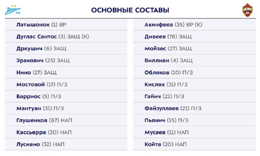 00:00 Судит матч «Зенит» – ЦСКА: Сергей Иванов, помощники судьи – Алексей Лунёв, Варанцо Петросян; резервный судья – Евгений Буланов; ВАР – Виталий Мешков; АВАР – Роман Сафьян; инспектор – Николай Иванов; делегат РПЛ – Радик Ахмадуллин.