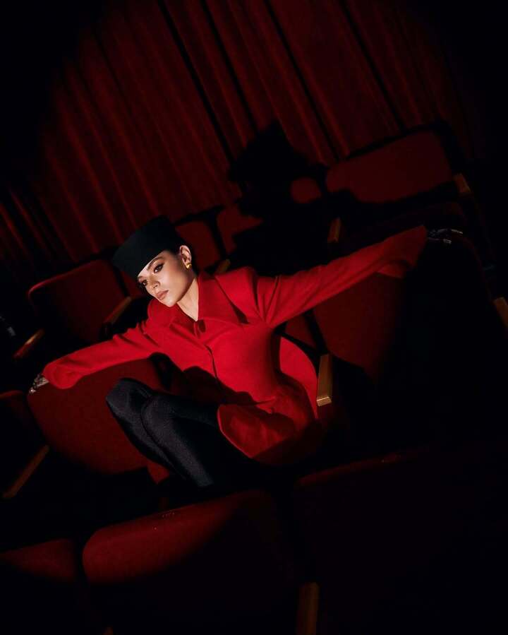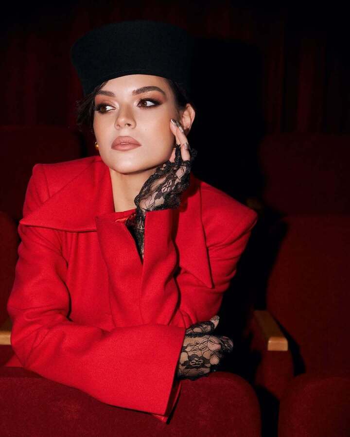 Фотографии Сотникова выложила в соцсети. Съемка прошла в пустом зале кинотеатра. Стилисты выбрали для Аделины элегантный и очень женственный образ.