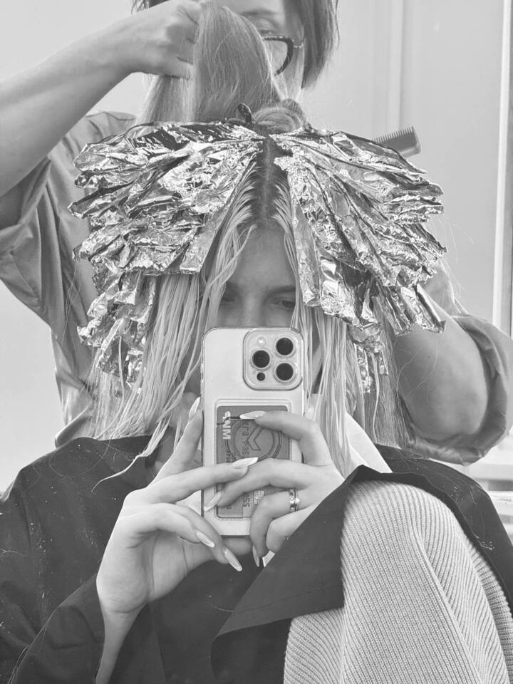 Вчера Трусова заинтриговала подписчиков, выложив черно-белое фото, где над ней колдует парикмахер-колорист. Александра призналась, что провела в кресле мастера практически полдня.