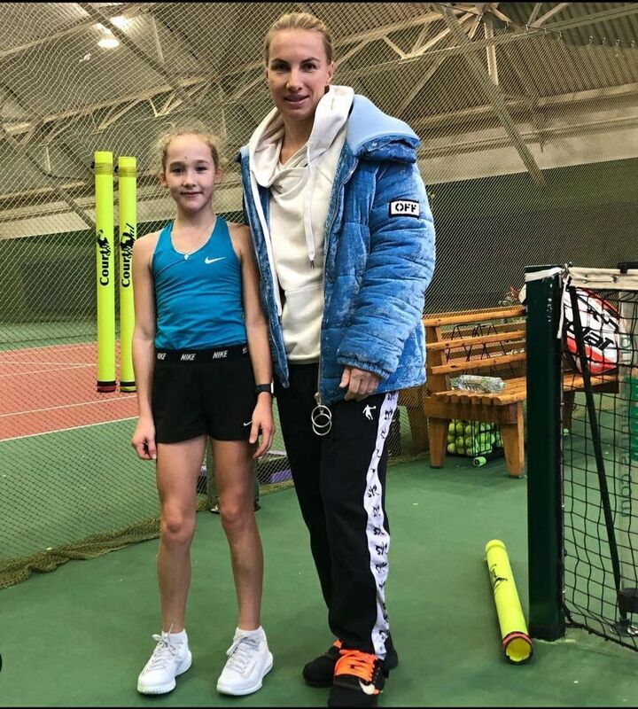 На фото маленькая Мирра стоит рядом с титулованной теннисисткой. Судя по всему, будущая звезда российского тенниса попросила своего кумира сделать совместный снимок на память.