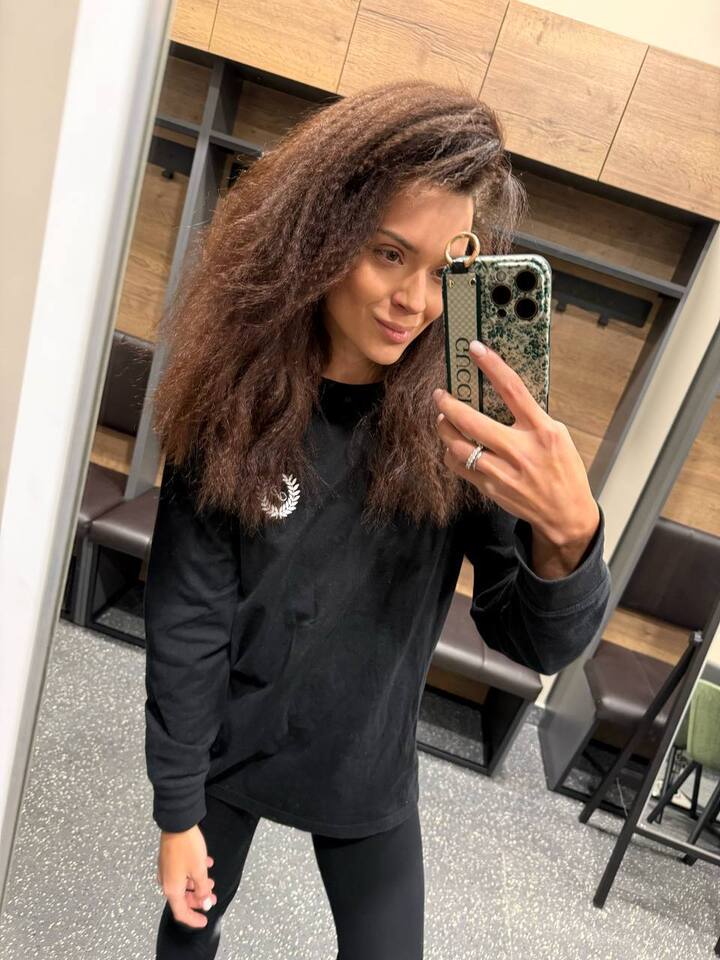 Сотникова поэкспериментировала с волосами, в результате чего на ее голове образовалась пышная кудрявая копна. В таком виде Аделина сфотографировала себя на телефон и выложила селфи в соцсети.