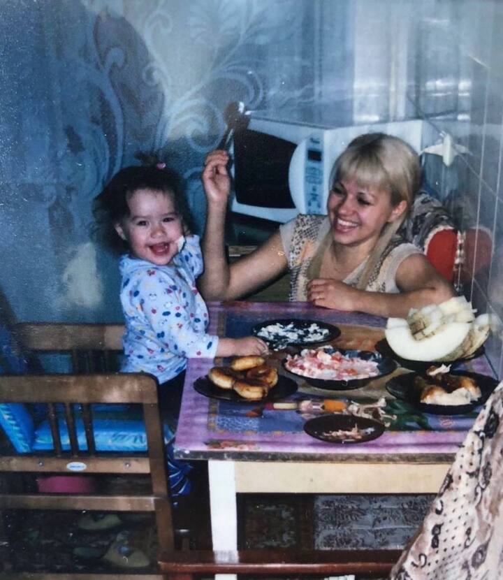 Снимки фигуристка выложила в соцсети, добавив к ним архивное фото. На старой фотографии будущая олимпийская чемпионка совсем маленькая. Она весел смеется, сидя за столом, а мама пытается накормить озорницу.