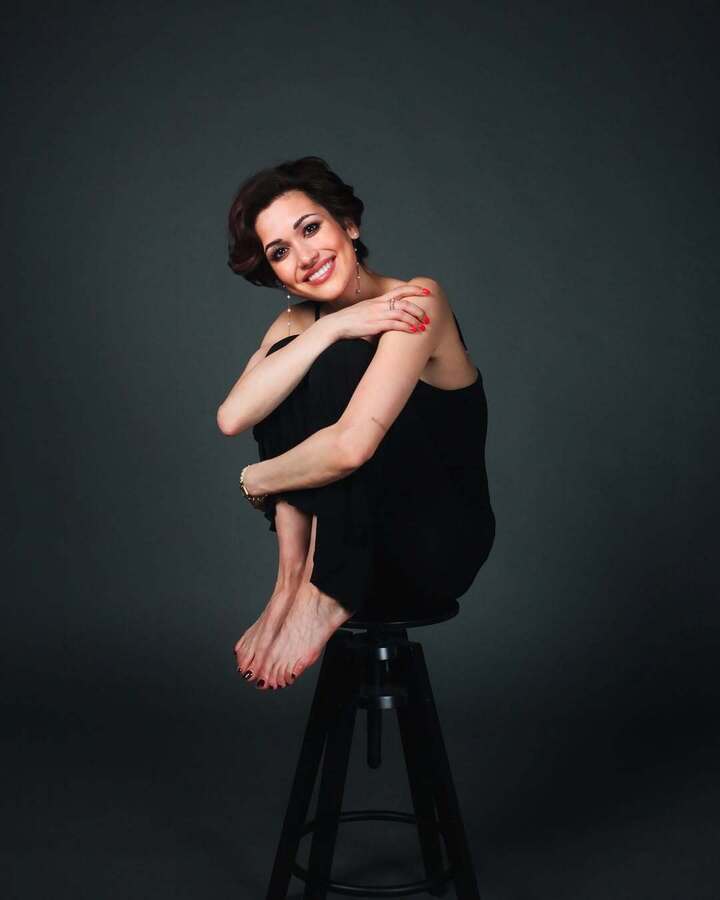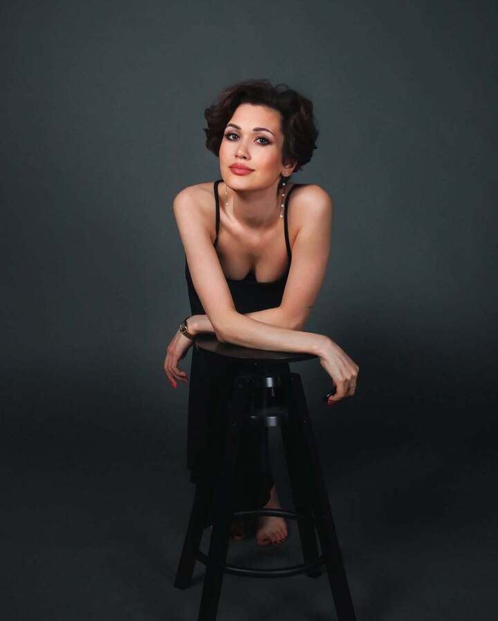 Но одном из фото Елизавета широко улыбается, на других ее улыбка более сдержана. На всех фотокарточках фигуристка в разных позах сидит на барном табурете.