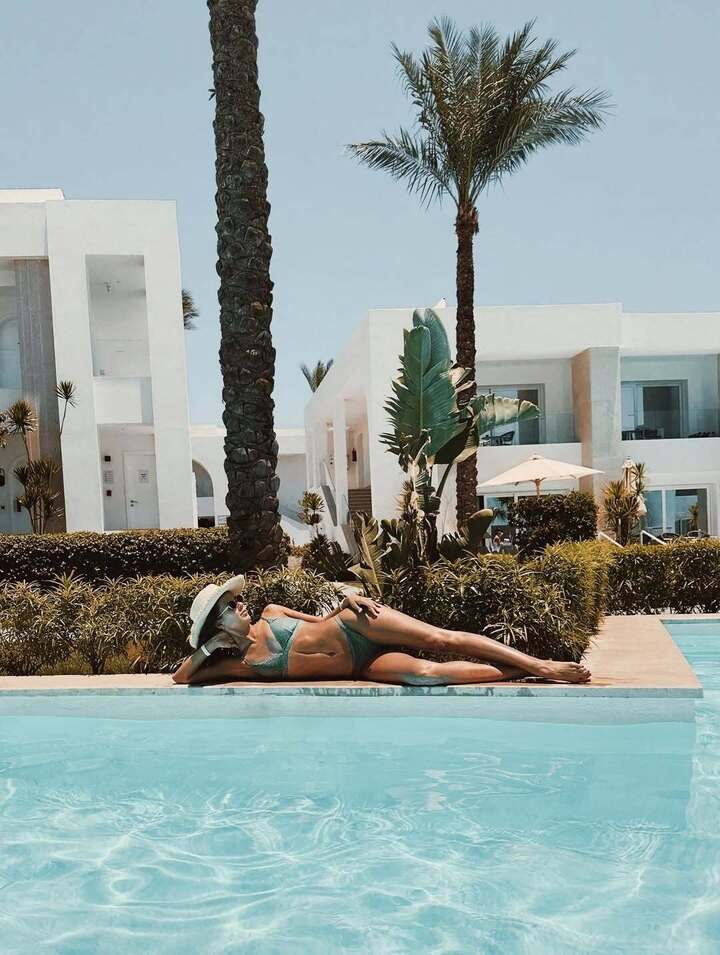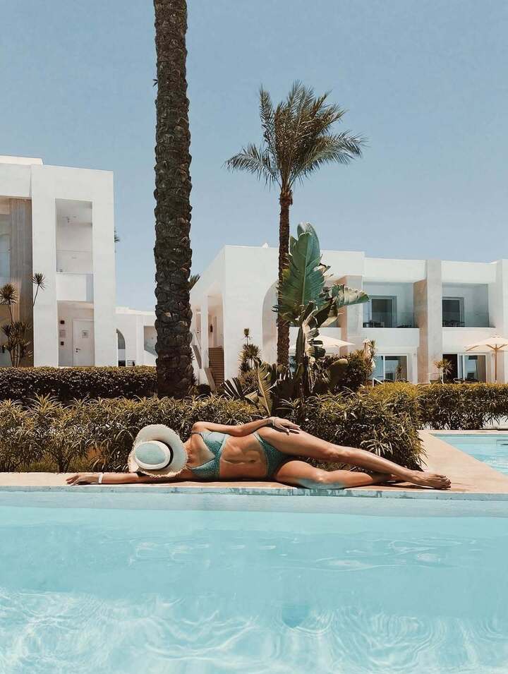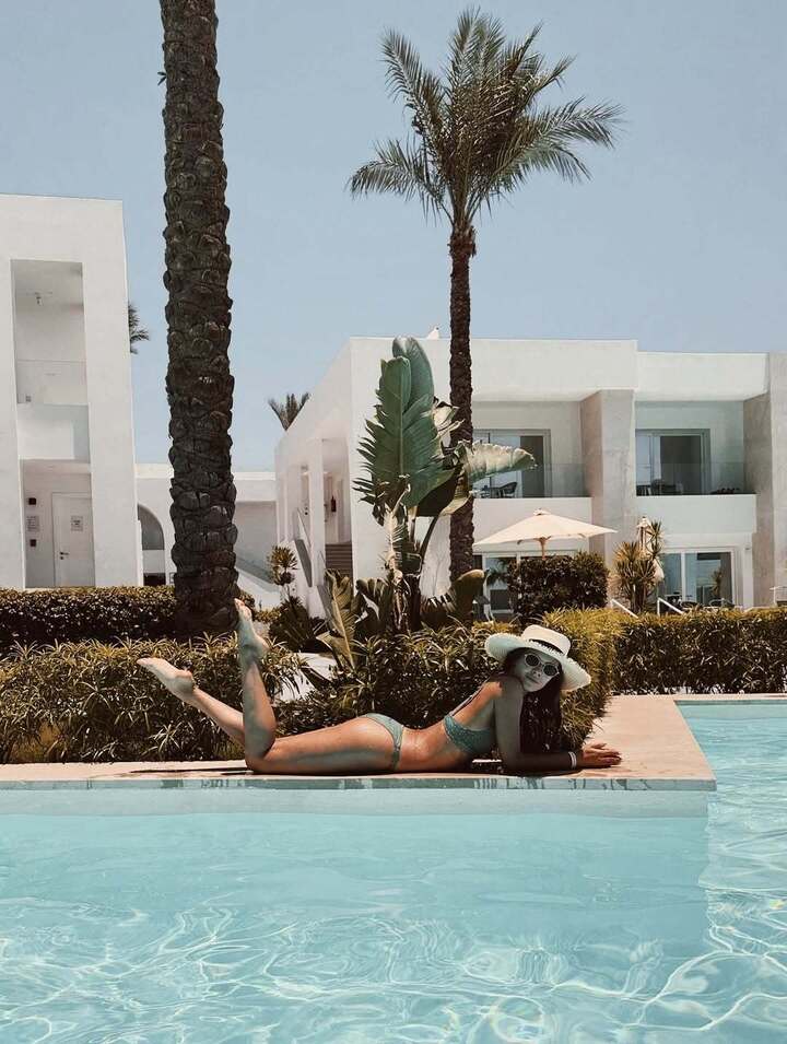 Екатерина опубликовала серию фотографий, сделанных у бассейна на территории отеля. Гимнастка снялась в очаровательном бикини в горошек и широкополой шляпе. Купальник позволил полюбоваться стройной фигурой и безупречным прессом чемпионки.