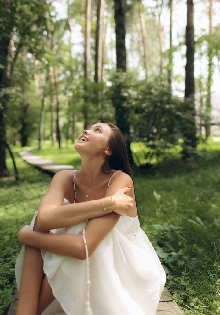 На своей страничке в соцсетях Евгения опубликовала серию новых снимков. Красивая брюнетка снялась в парке среди деревьев в романтичном образе.