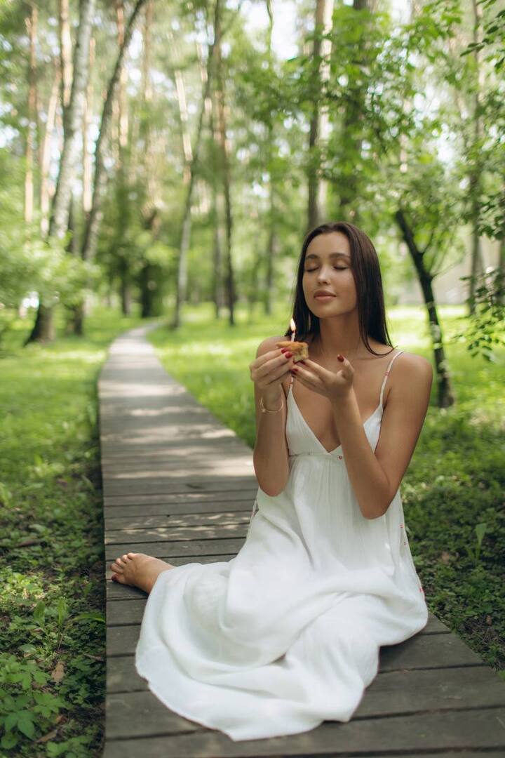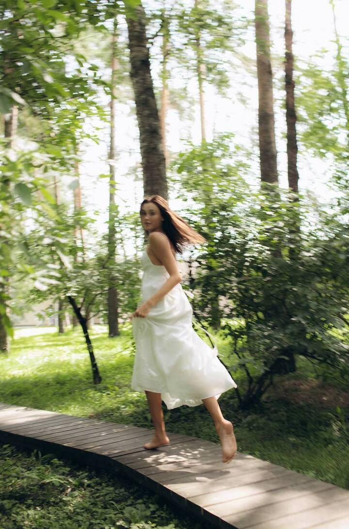 Евгения позировала в белом платье из воздушной ткани на тонких бретелях. Обувью гимнастка пренебрегла, что сделало ее образ еще более нежным, романтичным и загадочным.