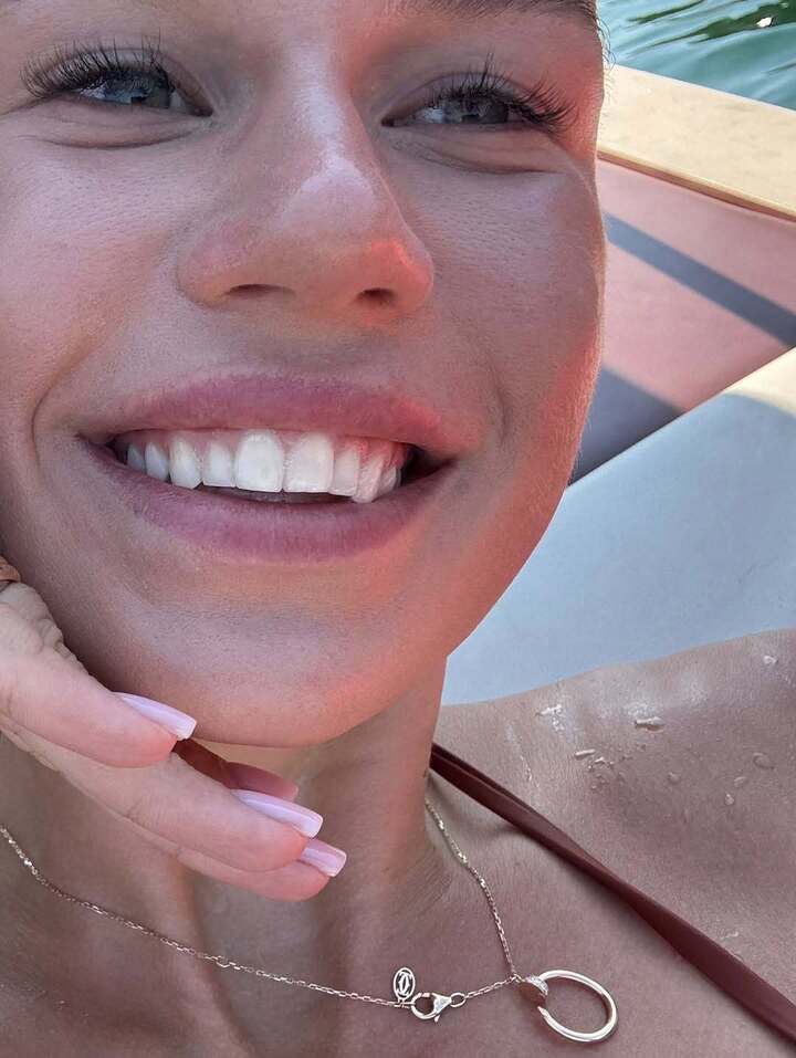 Арина собрала волосы в высокий хвост, надела солнцезащитные очки и украсила себя браслетами и ожерельем. В какой-то момент прогулки волейболистка решила раздеться до бикини, чтобы позагорать под жаркими лучами солнца.