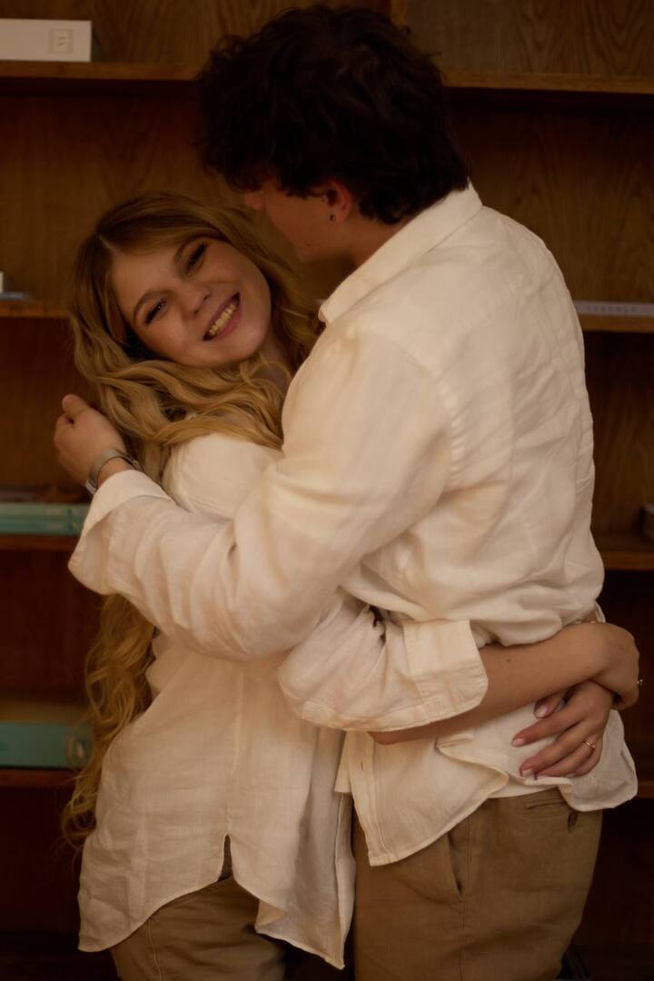 На первом кадре Трусова крепко обнимает мужа за талию и широко улыбается на камеру. Макар нежно смотрит в лицо любимой.