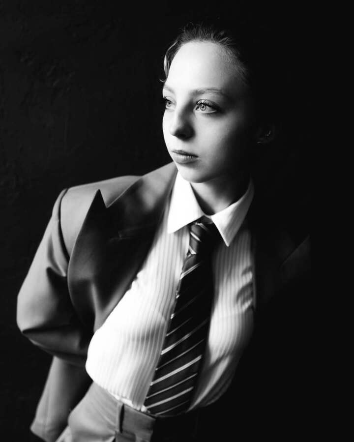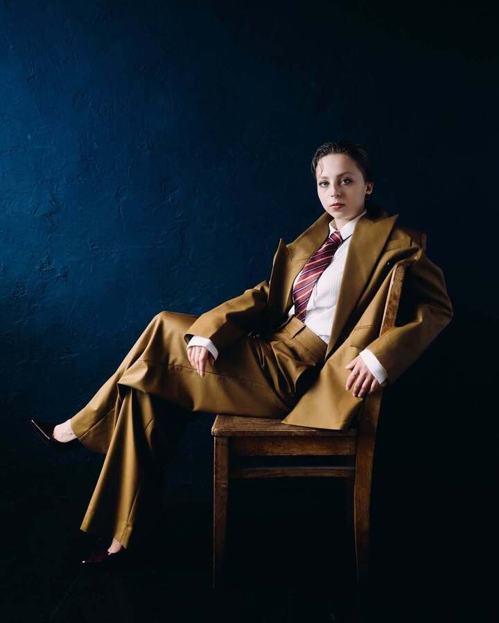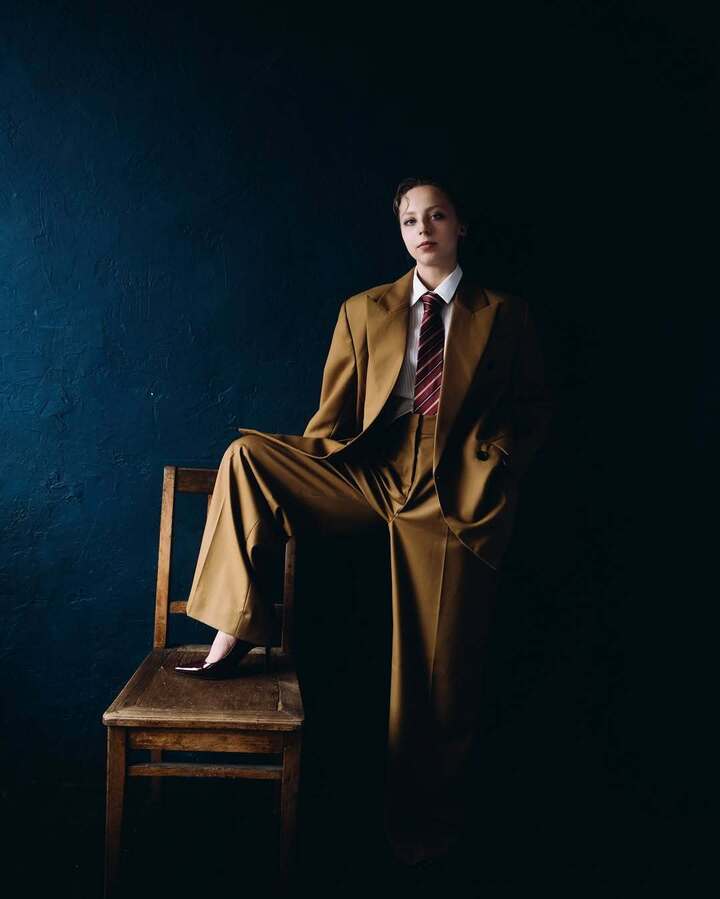Александра, которая некоторое время назад постриглась «под мальчика», решила подчеркнуть свою хрупкость и женственность мужским костюмом оверсайз. Фигуристка облачилась в брюки и пиджак светло-коричневого цвета, белую рубашку и полосатый галстук.