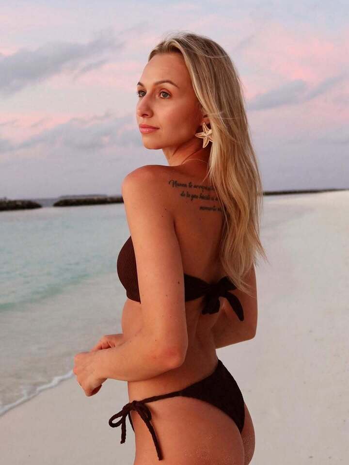Красивая блондинка позировала в коричневом бикини, показав изящную фигуру с рельефными мышцами и кубиками пресса. У матери двухлетнего сына нет ни грамма лишнего веса.