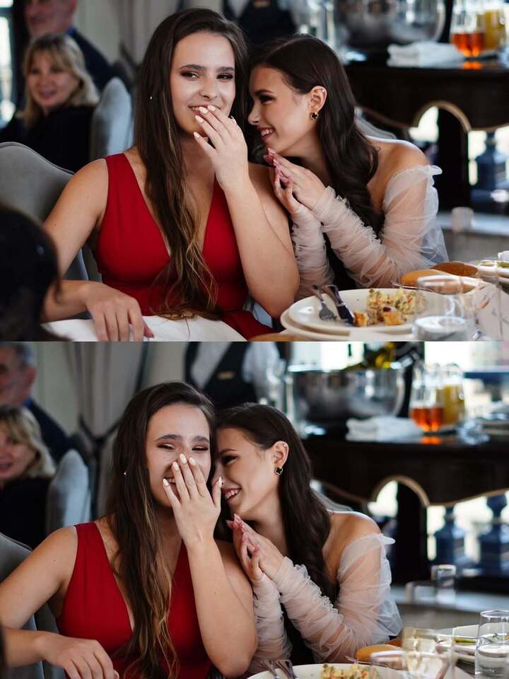 Еще один милый кадр поймал Анну и Инну за веселой беседой за столом. Сестры болтают и смеются.