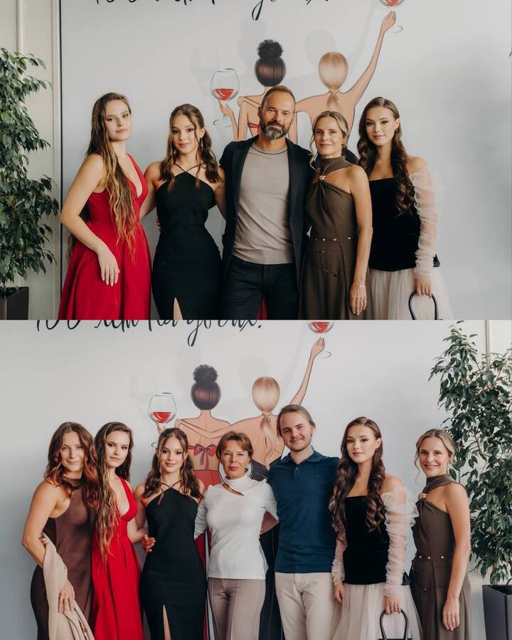 На другом снимке к ним присоединился отец — Станислав Щербаков. Третий снимок запечатлел всех участников вечеринки — близких родственников обеих юбилярш.