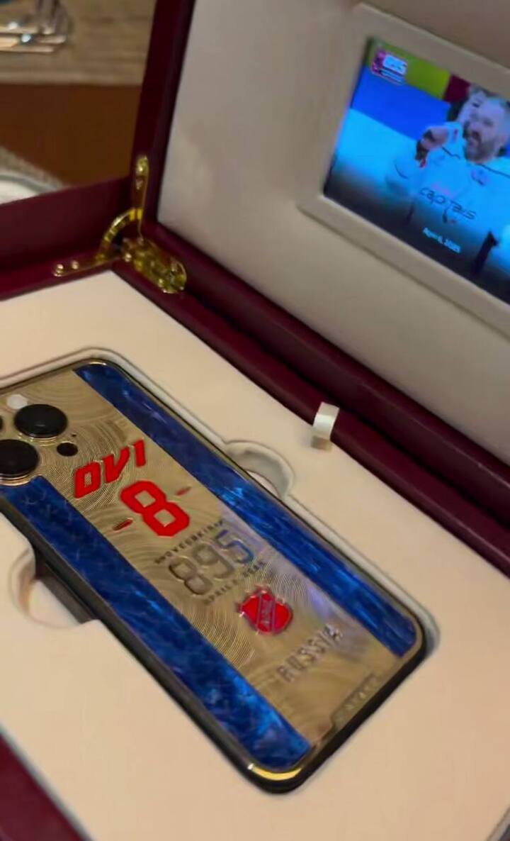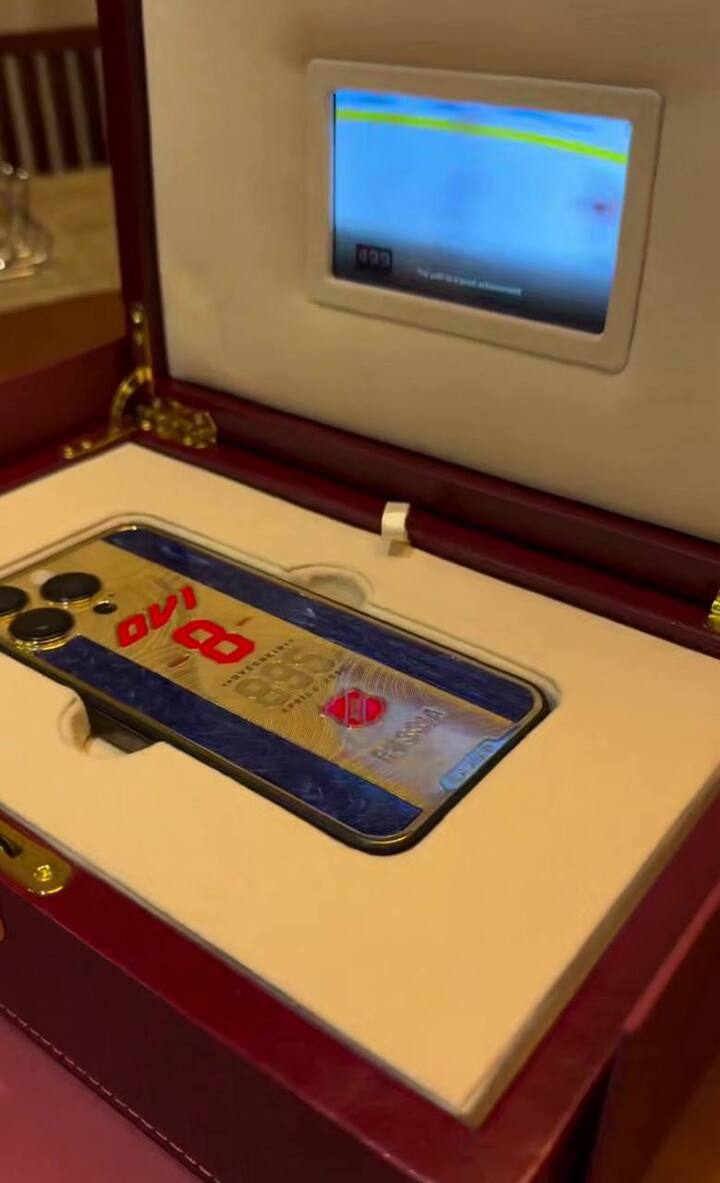 В честь этого Овечкину преподнесли уникальный подарок - эксклюзивный телефон. На смартфоне выгравированы инициалы хоккеиста и число забитых им шайб. Коробка, в которой преподнесли телефон, тоже прекрасна: в нее встроен экран, на котором воспроизводится запись рекордного гола хоккеиста.