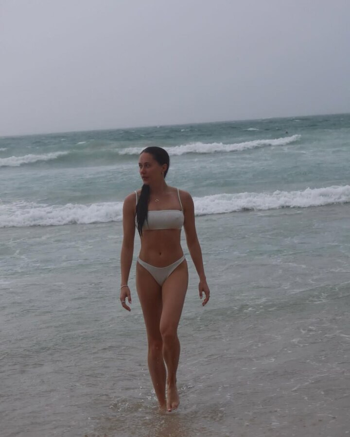 Красивая легкоатлетка снялась в раздельных и слитных купальниках разных цветов. Все они выгодно подчеркнули шикарные ягодицы спортсменки. Позы и ракурсы сделали снимки еще более эффектными.