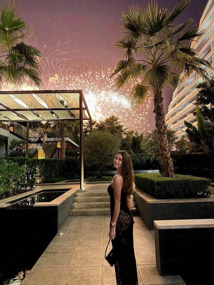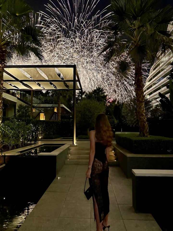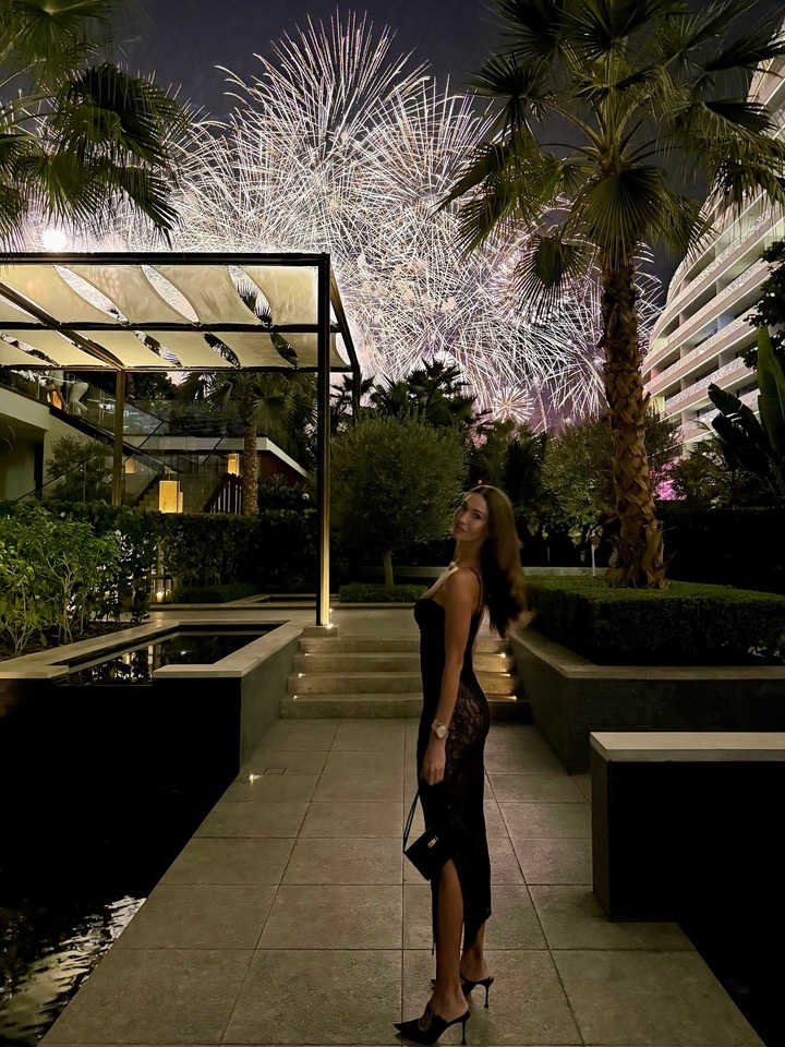 Виталия опубликовала серию фотографий, сделанных на фоне осветившего небо фейерверка. Снимки сделаны во время вечерней прогулки. Дьяченко надела черное боди с открытыми ягодицами, а сверху — платье из черного полупрозрачного кружева.