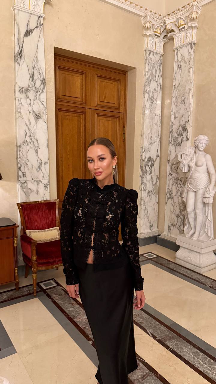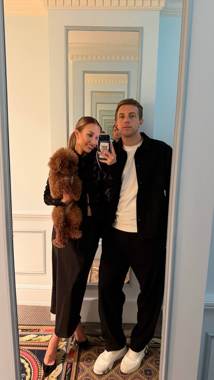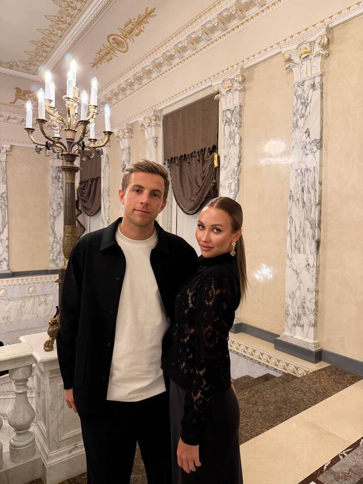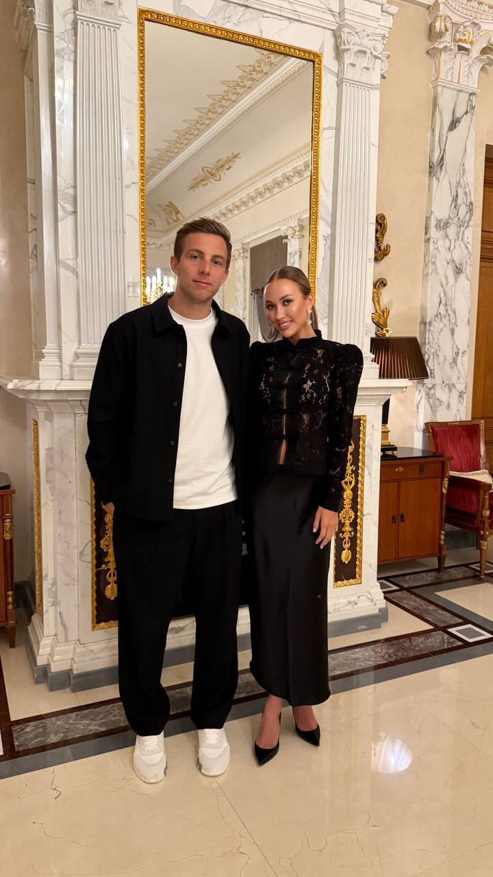 Потапова и Грикспур пришли на ужин вдвоем и сфотографировались в шикарном интерьере отеля. Анастасия, недавно сменившая цвет волос и ставшая золотисто-русой, выбрала элегантный черный комплект. Она оделась в атласную юбку миди и кружевной жакет.
