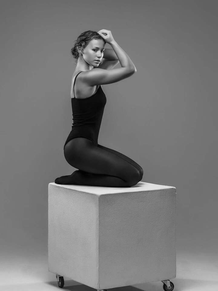 На страничке Елизаветы в соцсетях появилась серия черно-белых снимков. Кансо позировала в студии, реквизитом послужил куб на колесах.